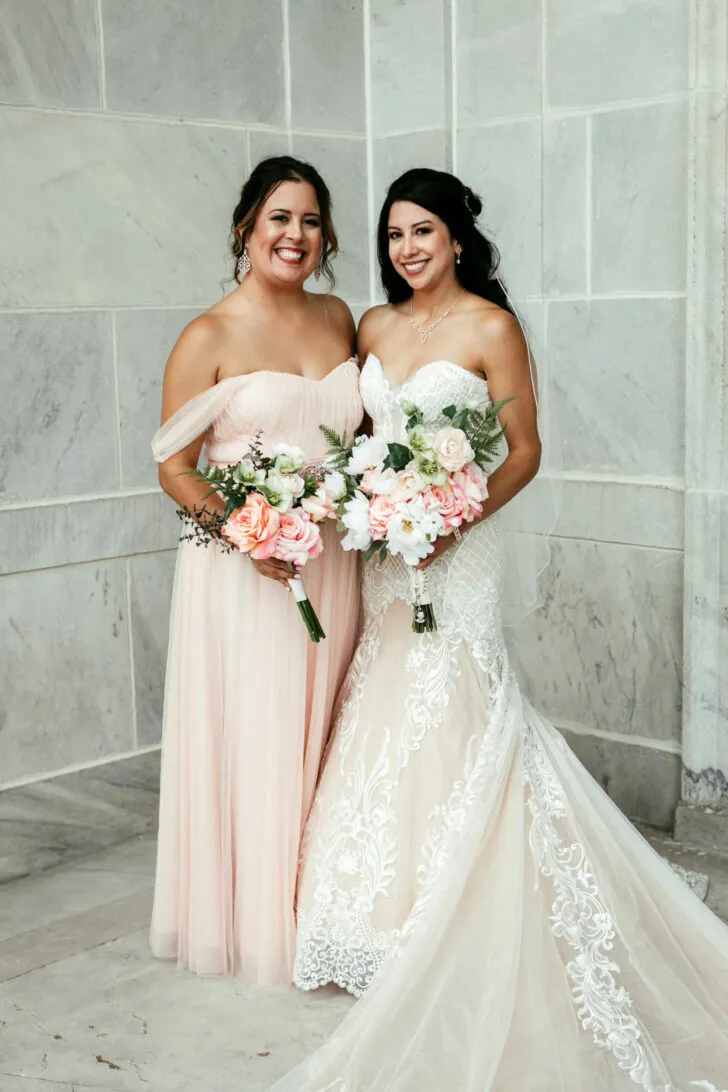 Now, this is actually kind of a tricky one… the bridesmaids are carrying bouquets from The Olivia Collection from Something Borrowed Blooms while the bride herself is carrying a fresh floral bouquet. Look how gorgeously you can mix and match your rented blooms in with the real thing, and your guests will be none-the-wiser!