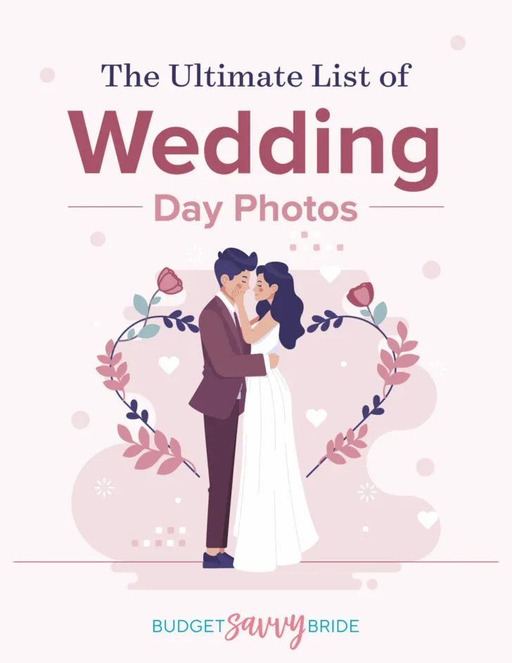 Below is a list of all recommended wedding photos to take for a heterosexual, male-female couple. Feel free to download and use this photo checklist whether you’re a bride, groom, or photographer!