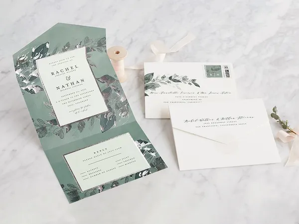 You can make these all-in-one designs offer a bit more of an eco-friendly slant if you want to conserve resources. For those who want to cut down on paper, envelopes, and the carbon emissions needed to ship and return response cards, just include a link to your wedding website for RSVP information instead of having them return a response card via mail.
